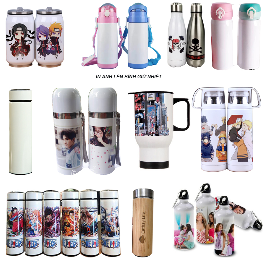 Mặt hàng bình giữ nhiệt in ảnh với dung tích từ 300 đến 500 ml, các mẫu bình giữ nhiệt khác nhau in theo yêu cầu của khách hàng, phục vụ cho nhu cầu sử dụng đồ dùng cá nhân sinh hoạt trong tập thể, ví dụ in ảnh và các thông tin cho các học sinh mang theo khi đi học. Đặc biệt hữu dụng khi mùa đông đến và bạn hoặc con bạn không muốn dùng nước lạnh.