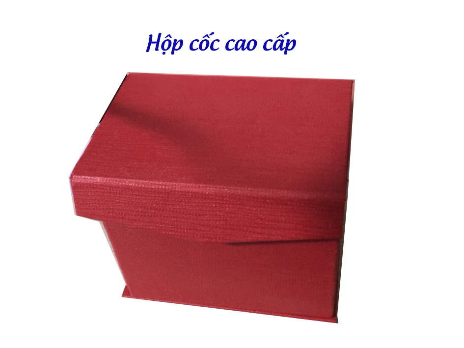 Hộp cốc cao cấp chúng tôi sản xuất ở dạng hộp âm dương có nắp trên nắp dưới và dạng hộp nắp đóng mở. Nhận in chữ và logo lên bề mặt hộp đựng, hộp cốc này chất lượng cao, cứng, chống va đập khi vận chuyển, do loại hộp này cồng kềnh tốn diện tích kho nên chúng tôi không lưu trữ nhiều, thường sản xuất theo các đơn đặt hàng.